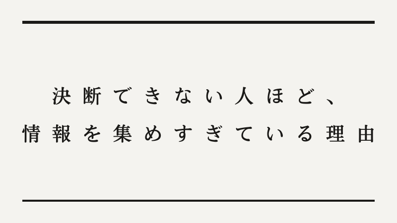 決断できない人ほど、情報を集めすぎている理由